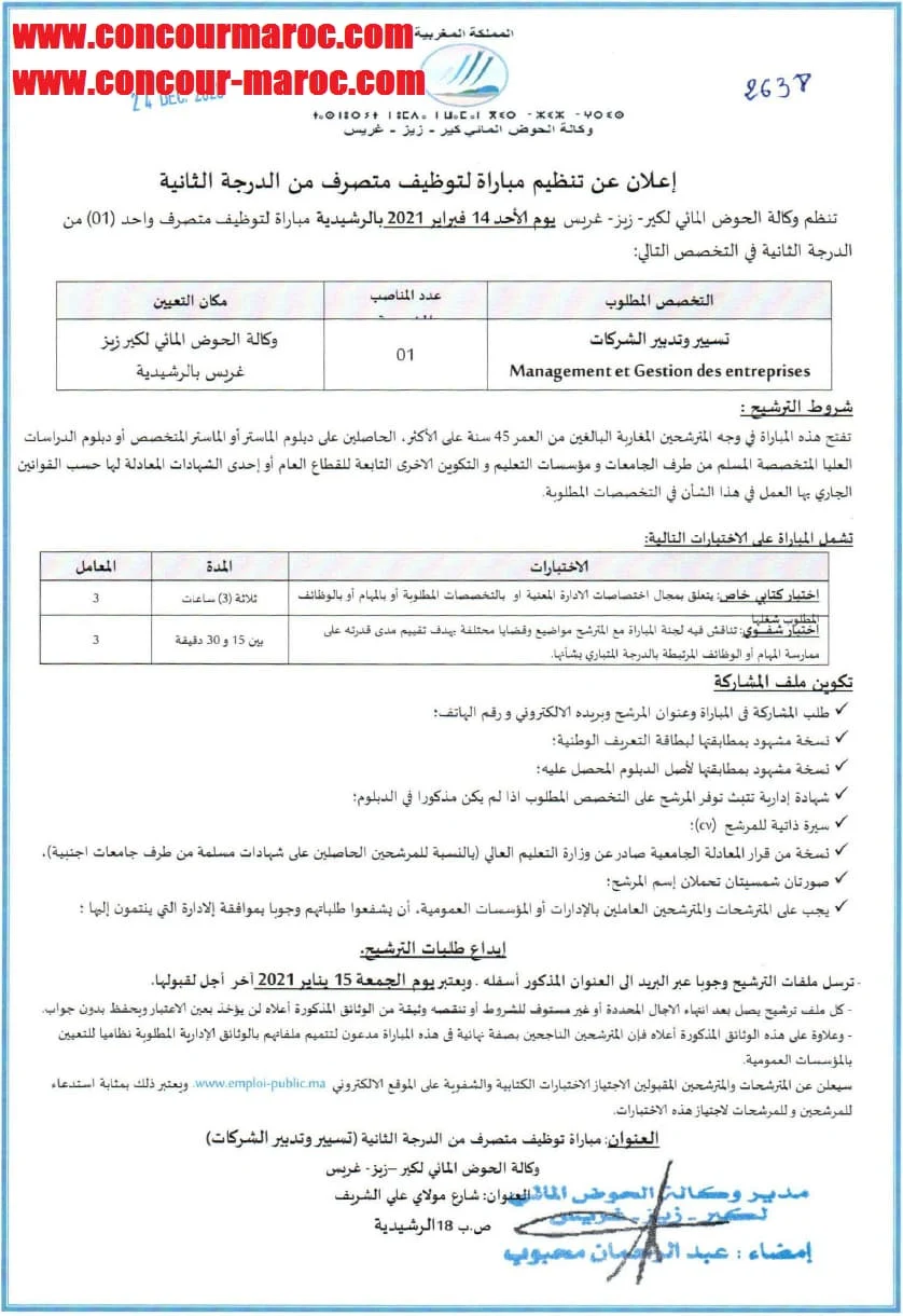 مباراة توظيف متصرف من الدرجة الثانية ~ سلم 11